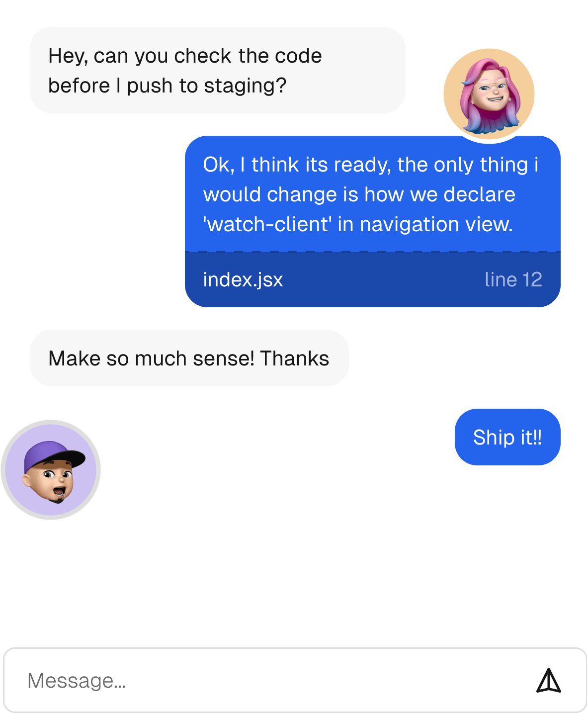 Share your work with your team. You can pair-program and debug as a team with shared context for greater efficiency.